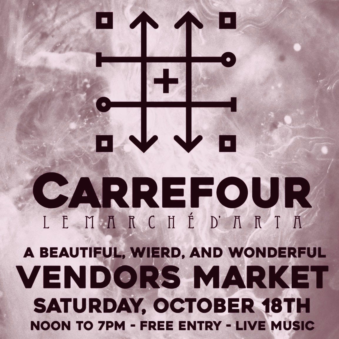 Oct.18- Carrefour Market Fundraiser- 4096 Bay Rd, Ferndale, WA 98248 This unique event is the opening party of a new artisan, oddities and destination shop. Started by friends and set at the crossroads, 10 minutes north of Bellingham. More info TBA.